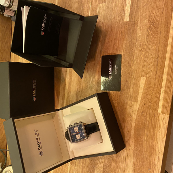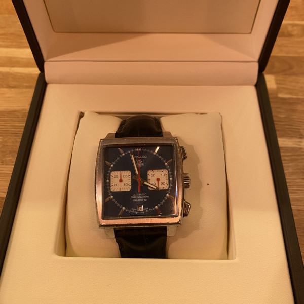 TAG Heuer Monaco CAW2111 Blue Dial Leather Strap Automatic Chronograph Watch