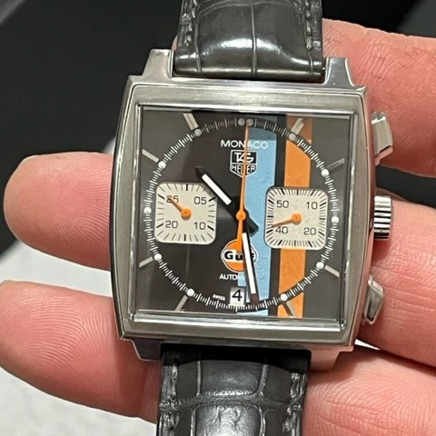 Tag Heuer Monaco CAW2113 Grey Dial Leather Strap Automatic Chronograph Watch