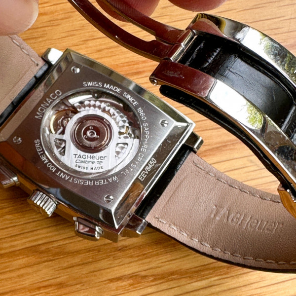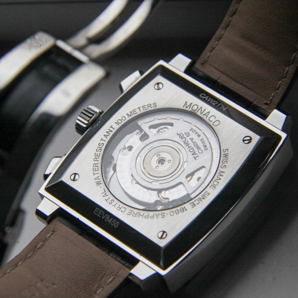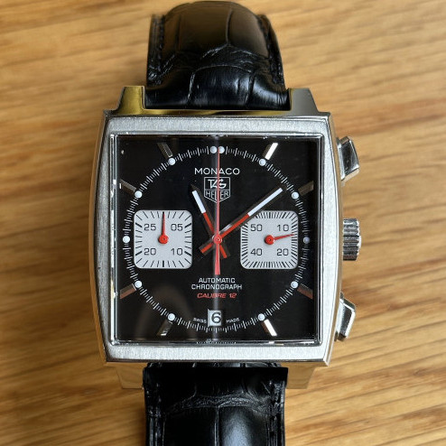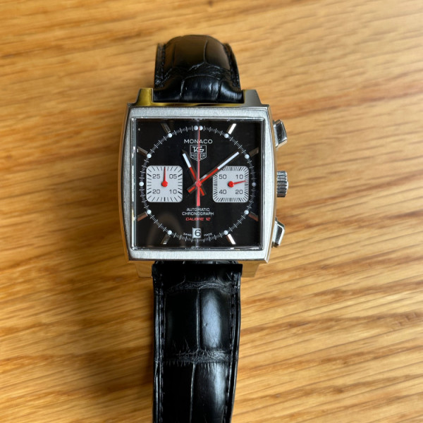 TAG Heuer Monaco CAW2114 Black Dial Stainless Steel Automatic Chronograph Leather Strap Watch