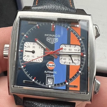 TAG Heuer Monaco Gulf CAW211R.FC6401 Blue Dial Leather Strap