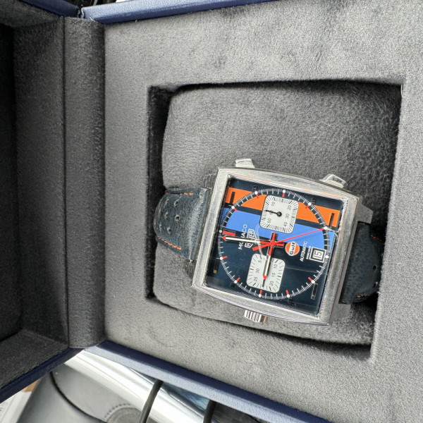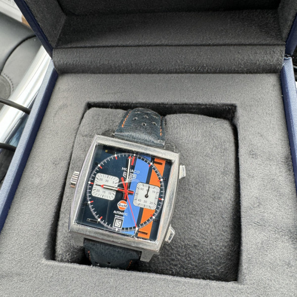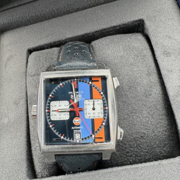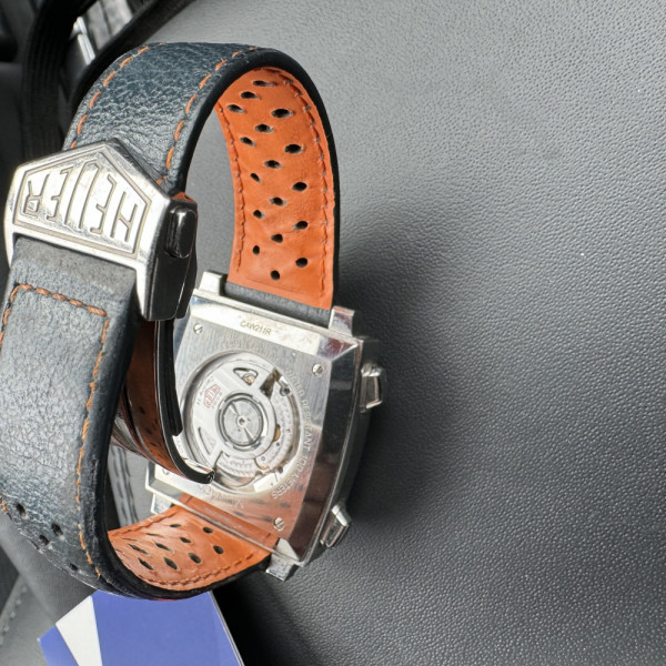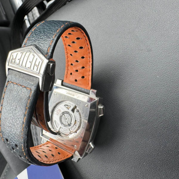 Tag Heuer Monaco Gulf CAW211R.FC6401 Blue Dial Leather Strap 39mm Stainless Steel