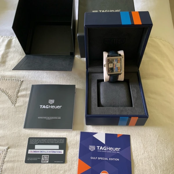 Tag Heuer Monaco Gulf CAW211R Blue Dial Automatic Chronograph Leather Strap