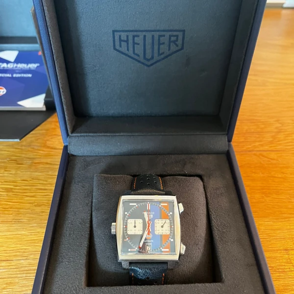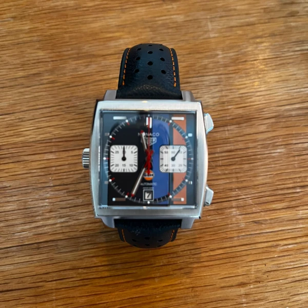 Tag Heuer Monaco Gulf CAW211R Blue Dial Automatic Chronograph Leather Strap