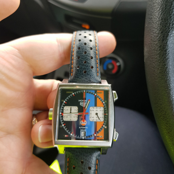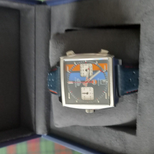 Tag Heuer Monaco Gulf CAW211R Blue Dial 39mm Leather Strap
