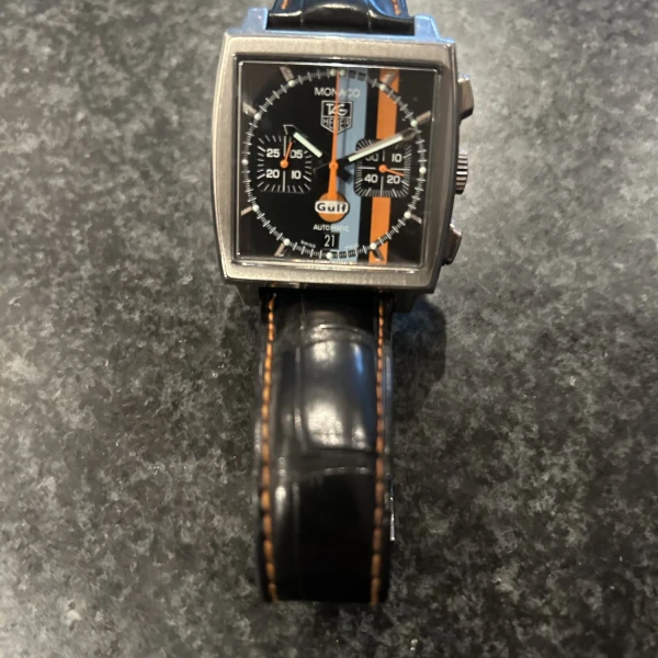 TAG Heuer Monaco CW211A Black Chronograph Dial Leather Strap