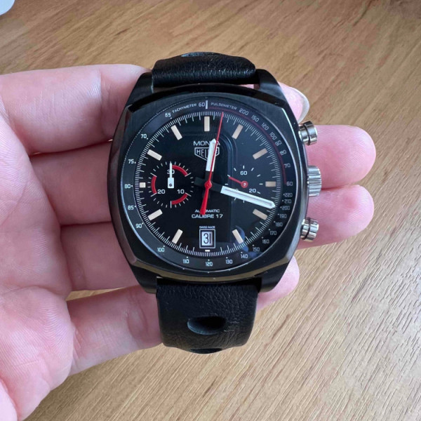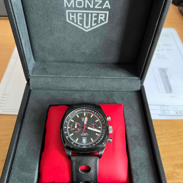 TAG Heuer Monza CR2080 Automatic Titanium Chronograph Black Dial Leather Strap