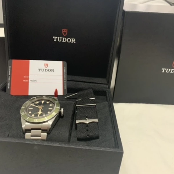 Tudor Heritage Black Bay Harrods 79230G Black Dial Green Bezel Steel Bracelet 41mm