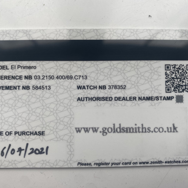 Zenith El Primero 03.2150.400/69.C713 Silver Dial Leather Strap 38mm Stainless Steel